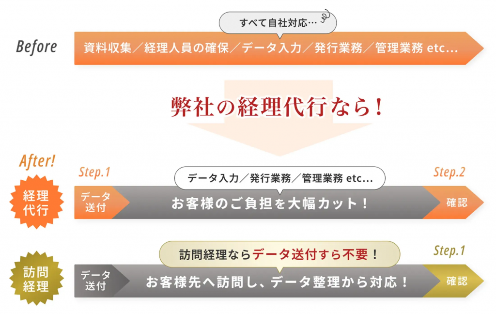 経理業務は、慣れている専門の担当者以外には難しい業務ではありますが、経理担当者にしかできない業務ではありません。これらの業務は当サービスでも請け負うことが可能です!